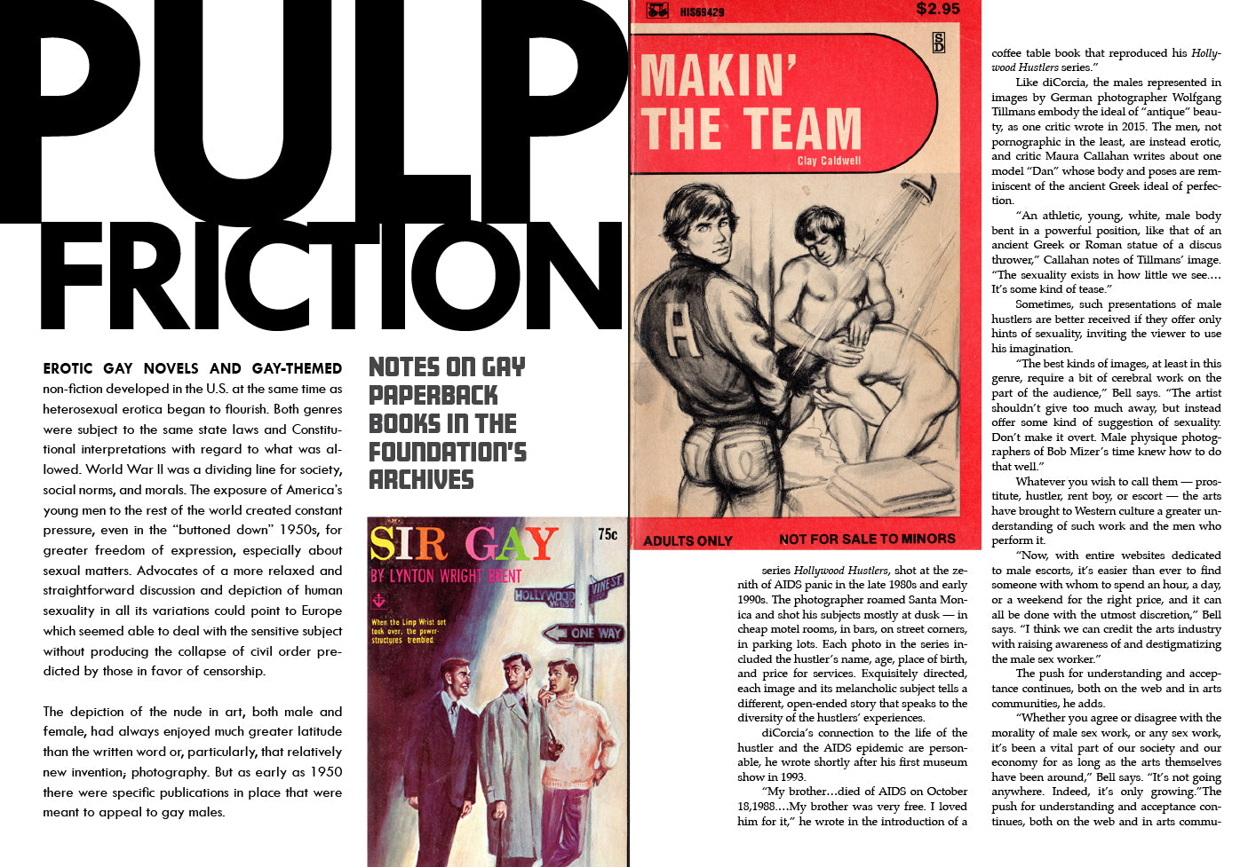 Bob Mizer Foundation. "Pulp Friction: Notes on Gay Paperback Books." Physique Pictorial 47 (Winter 2018): 86–91.